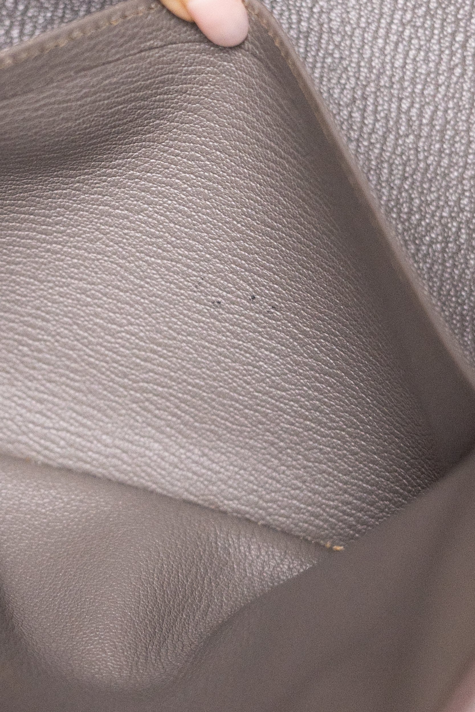 Fabrication: Clemence leather (etain colour) / palladium plated hardware