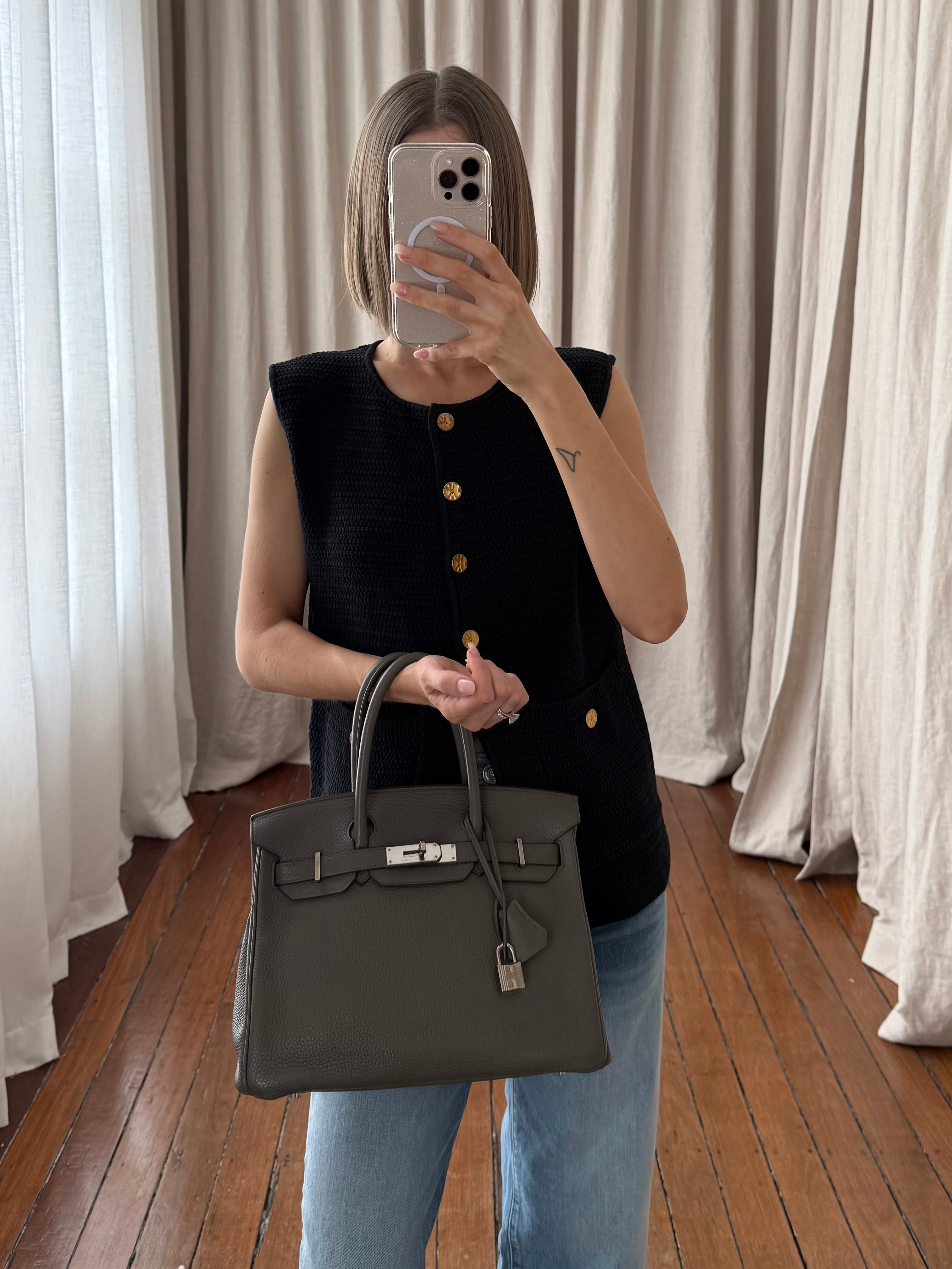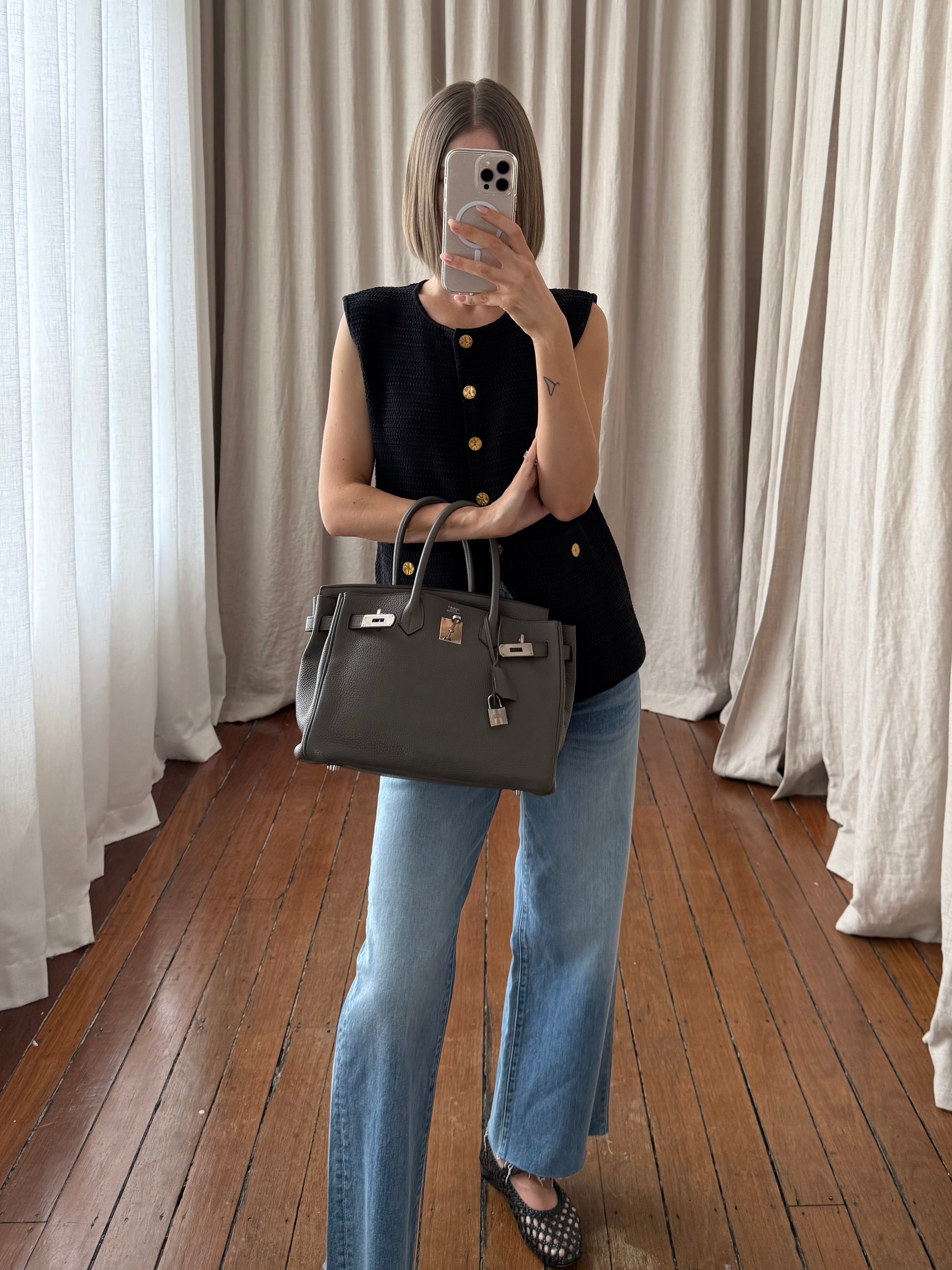 Style: Birkin 30 Veau Taurillon Clemence Etain