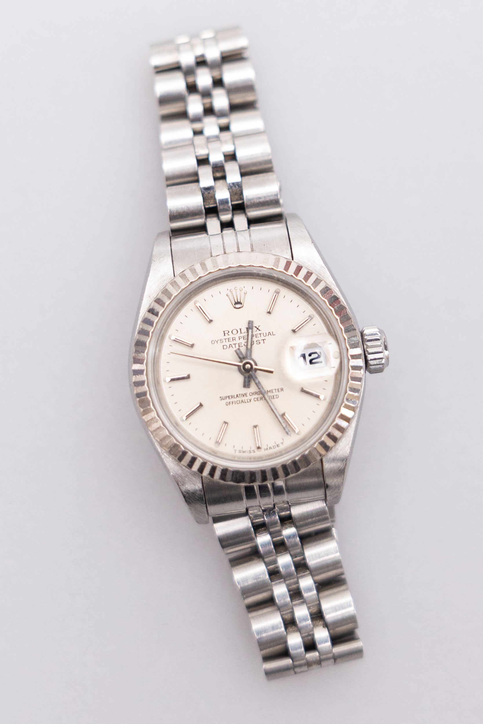 Fabrication: Stainless steel / silver dial / 18ct white gold fluted bezel